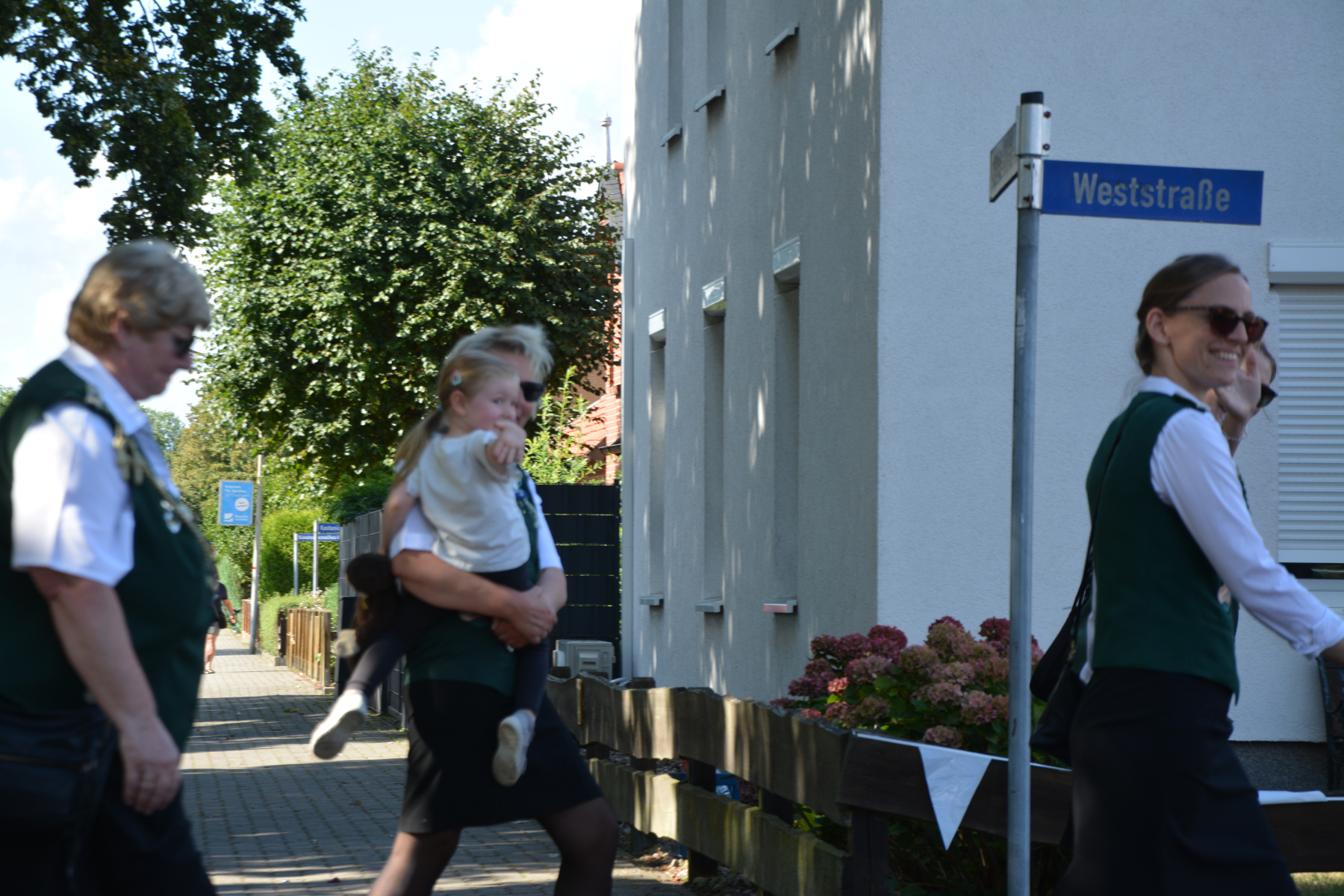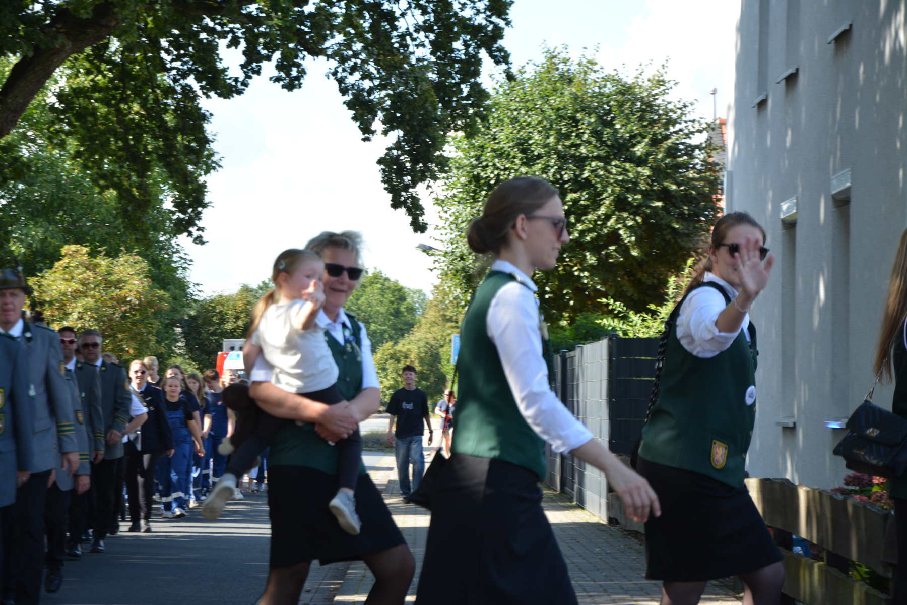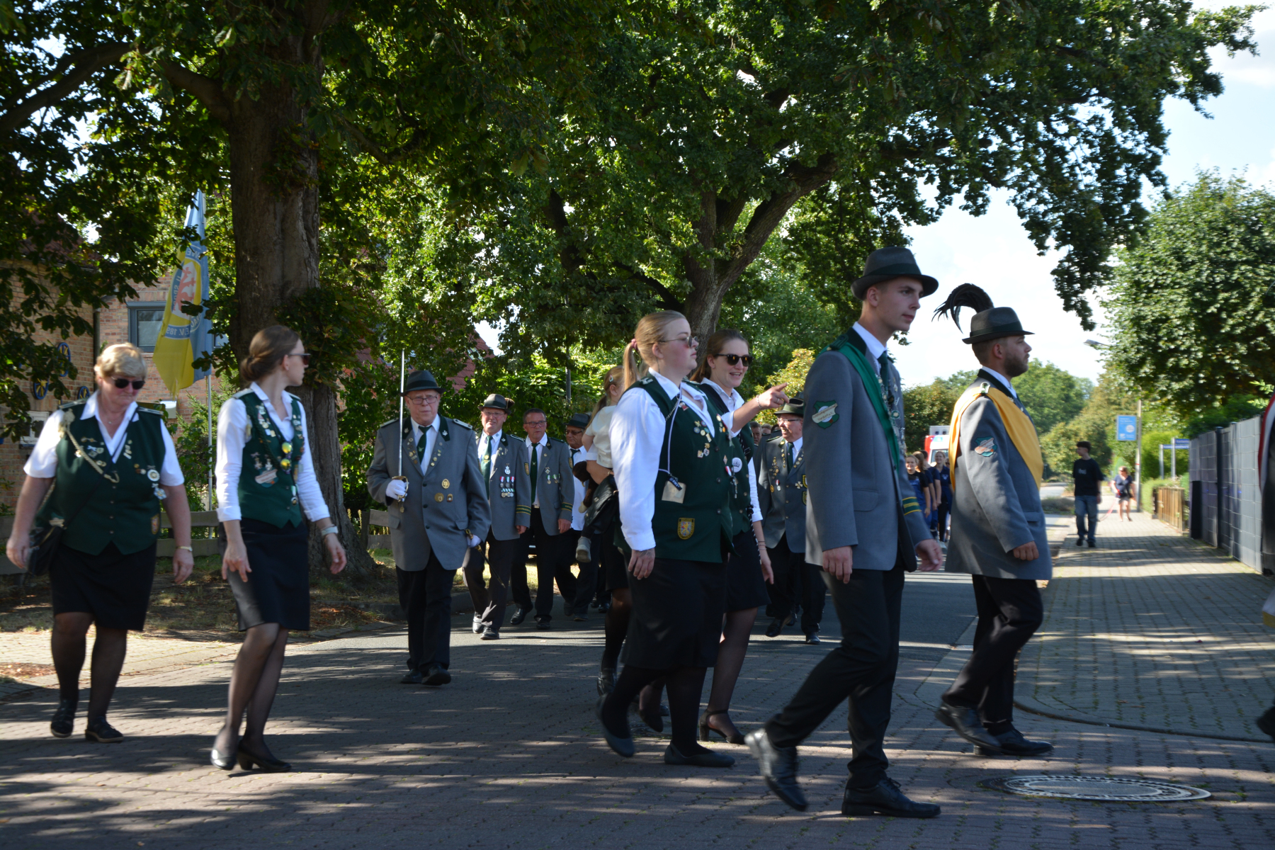 Nachdem es zwei Tage durchgehend geregnet hat schloss der Himmel rechtzeitig seine Schleusen und wartete am 5. September mit blauem Himmel und Prachtwetter auf. Die Schützendamen dekorierten mit gesammelten Blumen die Tische im Festzelt. Der Jugendclub mit vielen Jungschützen schmückte bereits eine Woche zuvor unter Mithilfe vom Eickenhof die Dorfstraßen mit Girlanden, welche von den Mitbürgern mit Dankbarkeit angenommen wurden. Die Schützenschwestern und Brüder trafen um 15:45 Uhr am Festplatz ein und traten um 16 Uhr zur Eröffnung des Schützenfestes in der Weststraße an. Nach den Meldungen des Kommandos eröffnete der 1. Vorsitzende Glenn Köhler das Schützenfest. Der Umzug setzte sich unter dem Kommando von Christian Schnelle und musikalischer Begleitung durch den Feuerwehrmusikzug Meine in Bewegung und holte die amtierende große Majestät Merrit Ungar mit Adjutantin Stefanie Rick zum Festplatz ab.