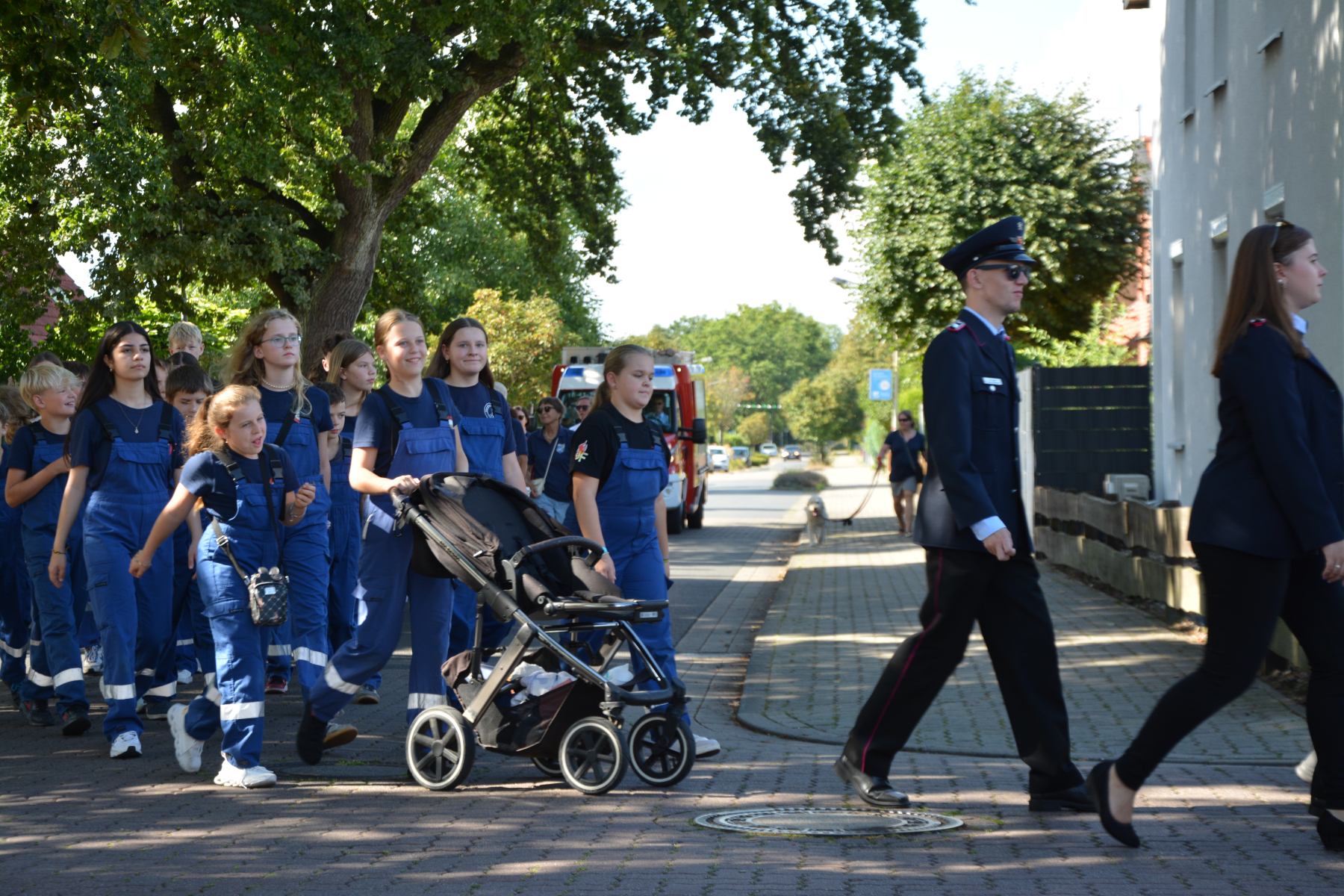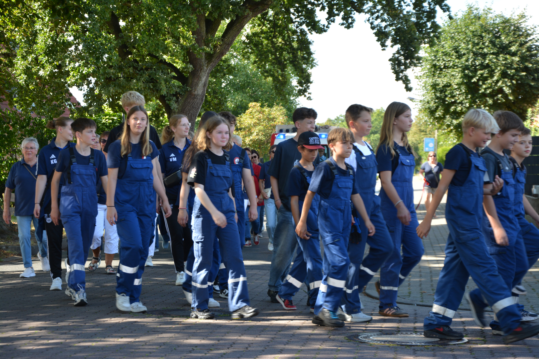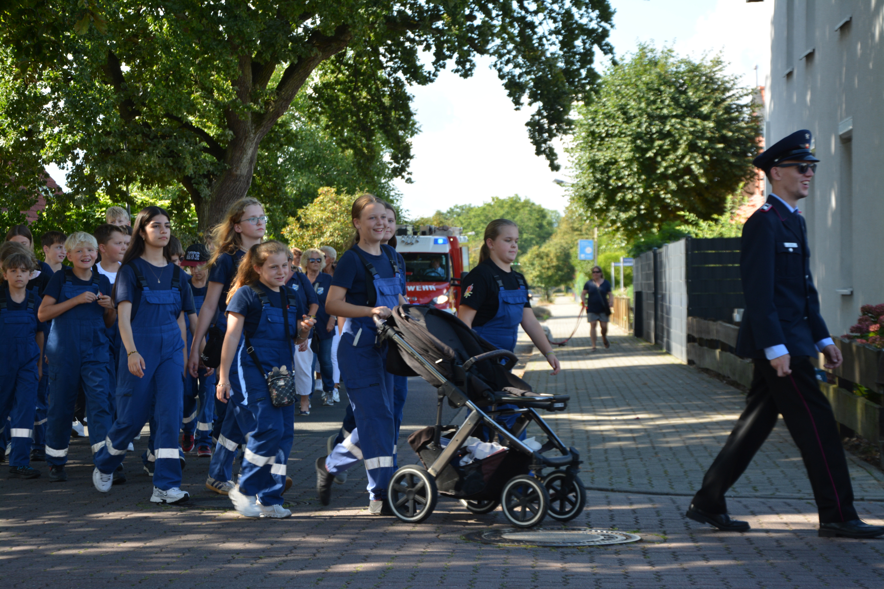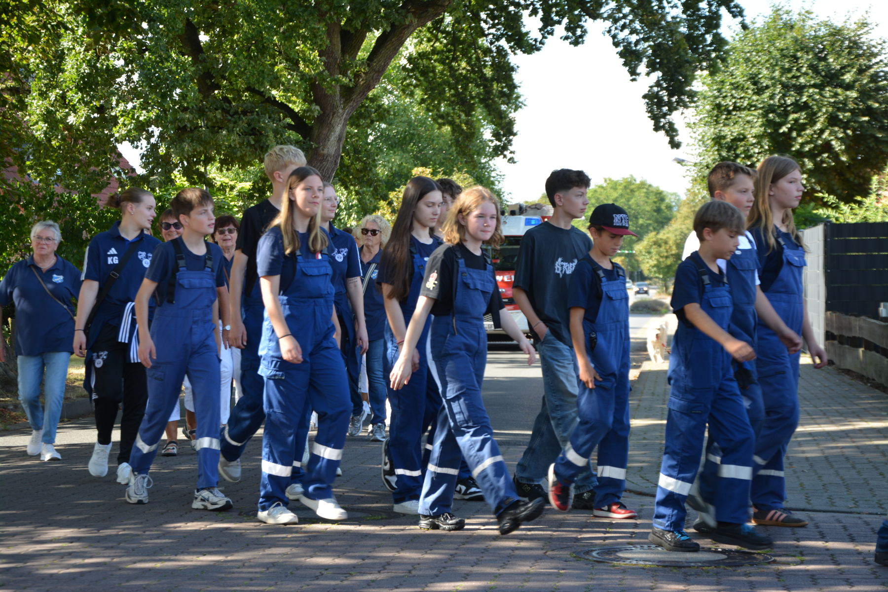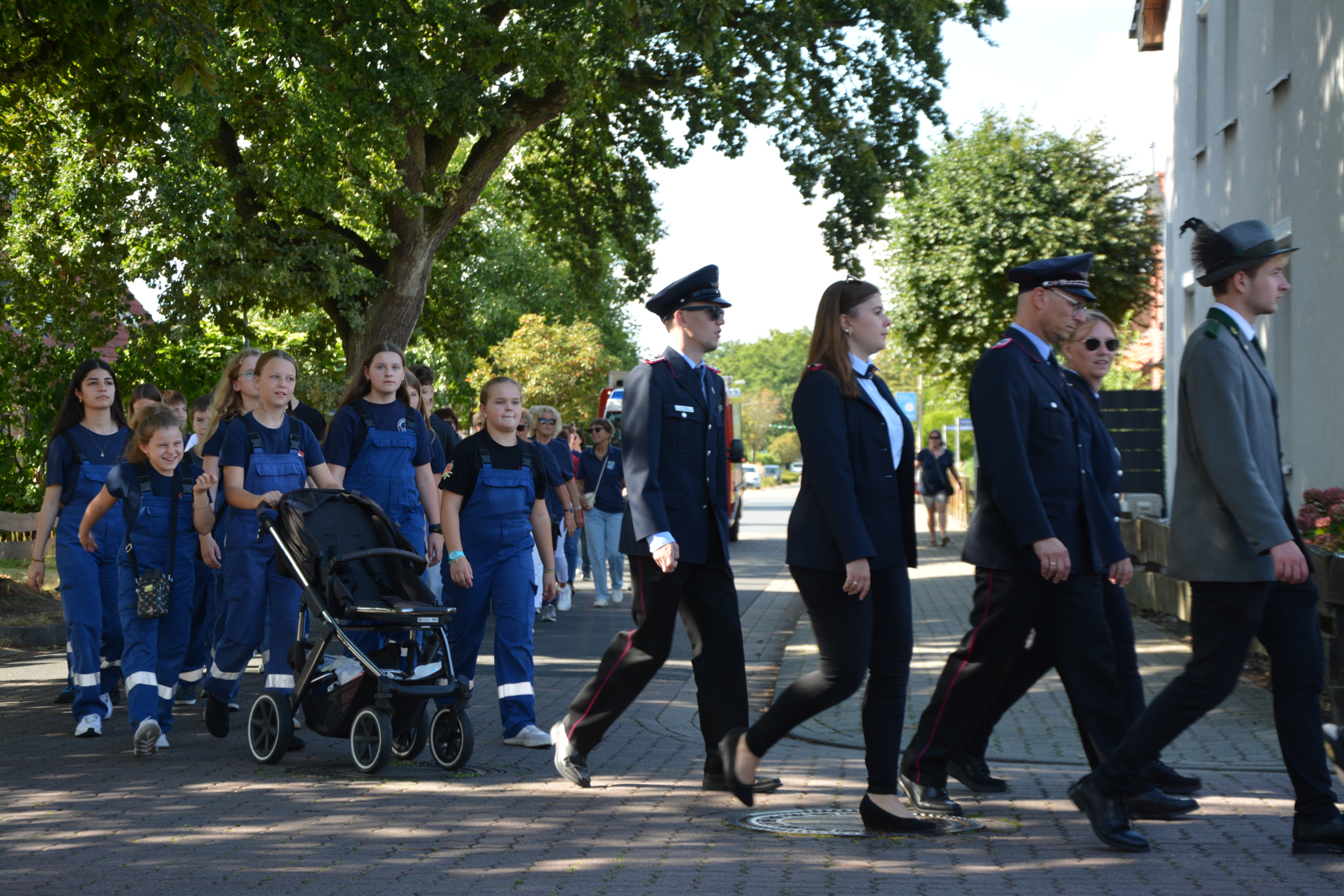 Um 13 Uhr wurde dann zum großen Festumzug unter musikalischer Begleitung durch den fantastischen Spielmannzug Altencelle angetreten. Hier kamen viele TSV-Sportler hinzu, sowie die Jugend- und Kinderfeuerwehr, die unserer Einladung zum großen Festumzug gerne gefolgt sind. Zuerst ging es zum Kriegerdenkmal am Kaisergarten zur Kranzniederlegung durch den Vorstand der Schützengesellschaft. Im Anschluss setzte der Umzug seinen Marsch durch das Dorf mit Einbindung eines Getränkestopps zur großen Majestät Hans-Jürgen Knuth fort. Auch dort wurde die Scheibe fachmännisch von unseren Scheibenträgern angebracht und der Säbeltanz zelebriert.